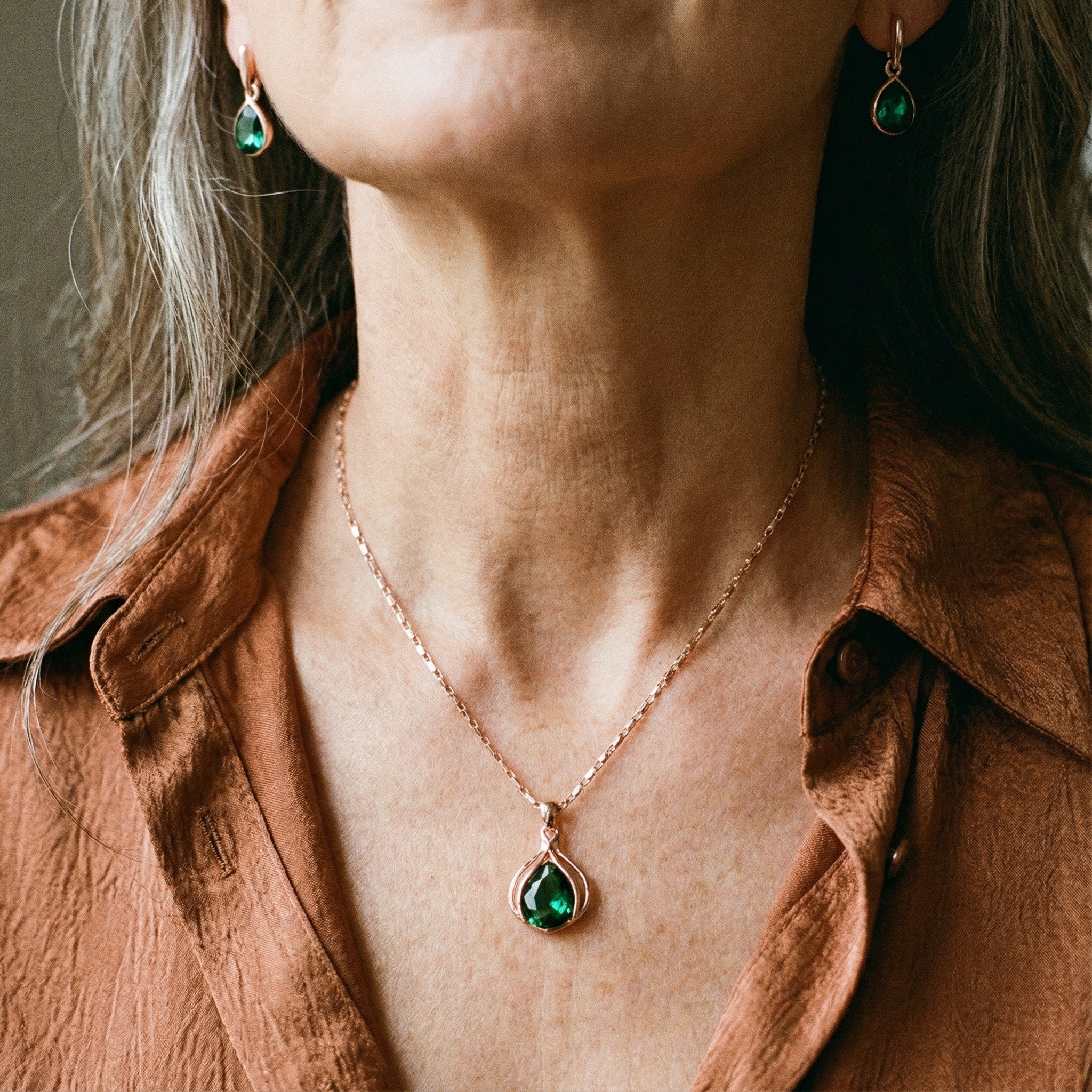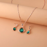 Set de collar y aretes en cristal verde y oro