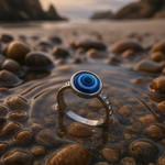 Objevte Elna, významný prsten s hluboce modrým, smaltovaným středem, který připomíná klid moře. Malé křemeny podél pásu mu dodávají rafinovaný vzhled, inspirovaný třpytivými vlnami.