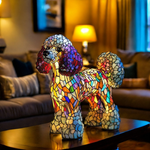 Lampa s vitrážovým psem pudlem